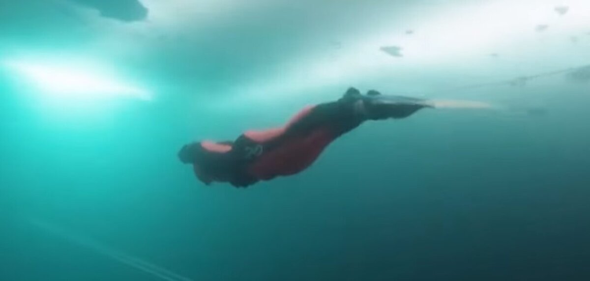 خانم شناگر شجاع زیر آب‌های یخ‌زده با غواصی آزاد، مسافتی حدود ۱۴۰ متر را با موفقیت طی کرد و رکورد‌های گینس را شکست.