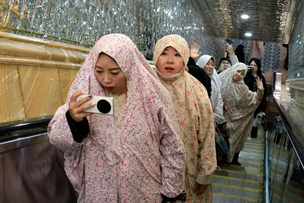 (تصاویر) شاخ‌های مجازی چین با چادر در حرم امام رضا(ع)
