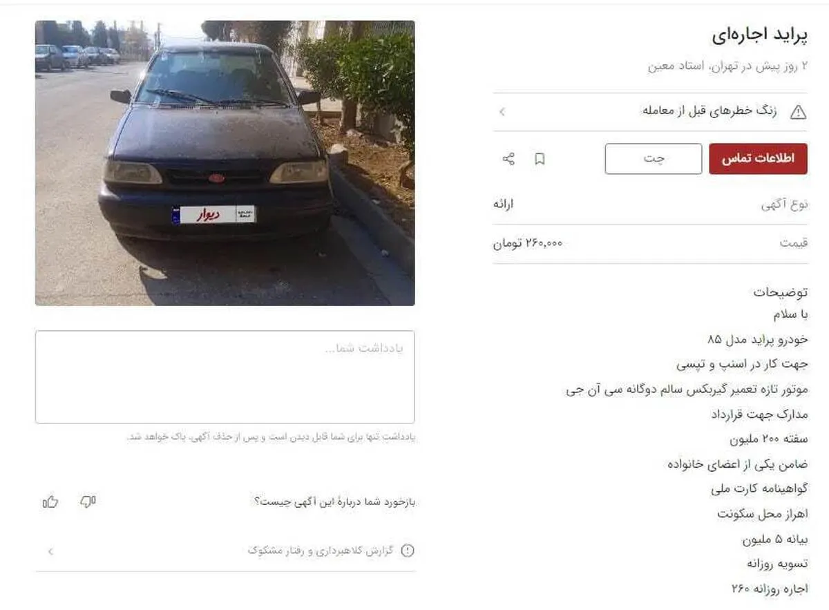 «پراید اجارهای» هم به بازار آمد! +عکس