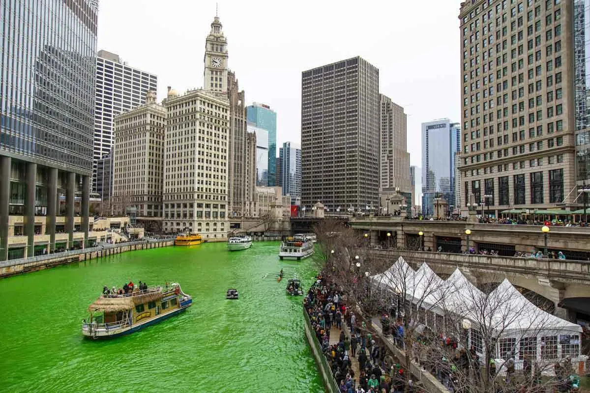 ماجرا چیست؟ هرسال به مناسبت روز سنتپاتریک در آمریکا یک رودخانه بهطور کامل به رنگ سبز در میآید.