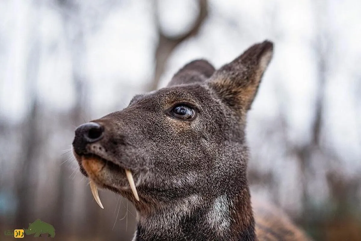 حیوان شناسان دندانهای نیش این آهو را مشابه عاج فیل میدانند.