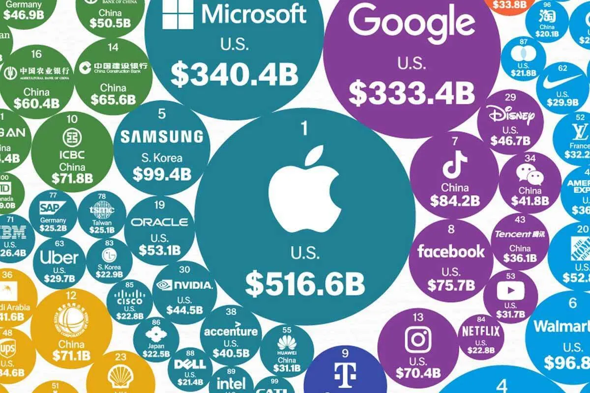اپل تنها برند آمریکایی نبود که چنین رشدی داشت. در واقع، ۶ برند آمریکایی در میان ۱۰ برند با ارزش جهان و ۵۱ برند آمریکایی در ۱۰۰ برند برتر دنیا، قرار دارند.