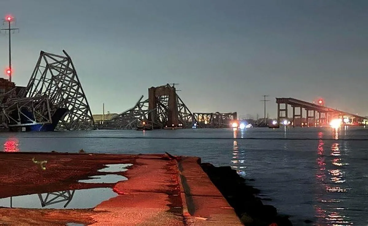 وضعیت پل ۲ و نیم کیلومتری فرانسیس اسکات یک روز پس از برخورد کشتی باری را می‌بینید.