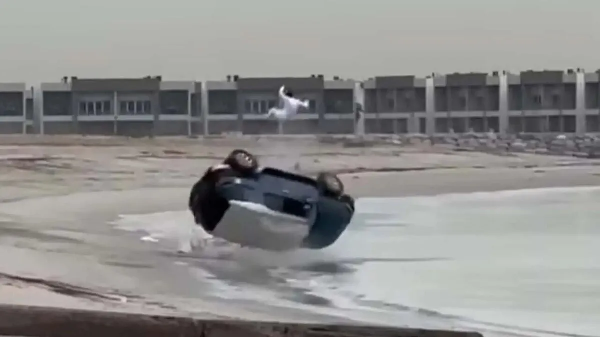 فیلم ضبط شده در ساحل ابوالحسنیه کویت نشان می‌دهد که حرکت نمایشی یا یک تویوتا FJ کروزر، به طرز وحشتناکی به یک تصادف عجیب می‌انجامد.
