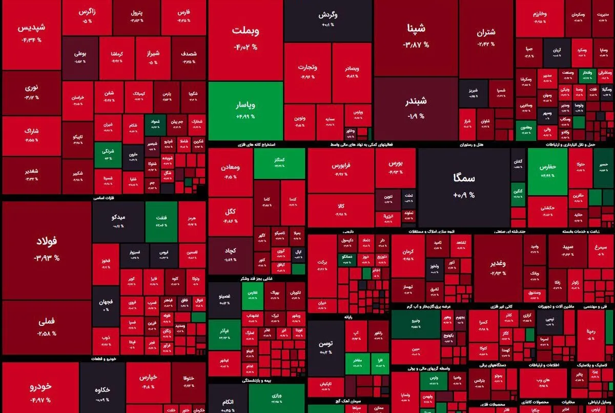 امروز وبملت، اخابر، شستا و خودرو نمادهای قرمز پوش بورس بودند که بیشترین اثر را در افت شاخص کل بورس داشتند. در سوی دیگر نمادهای فملی، سیتا و تاصیکو از نمادهای سبز بودند که اثر مثبت بر شاخص داشتند.