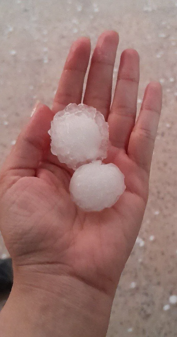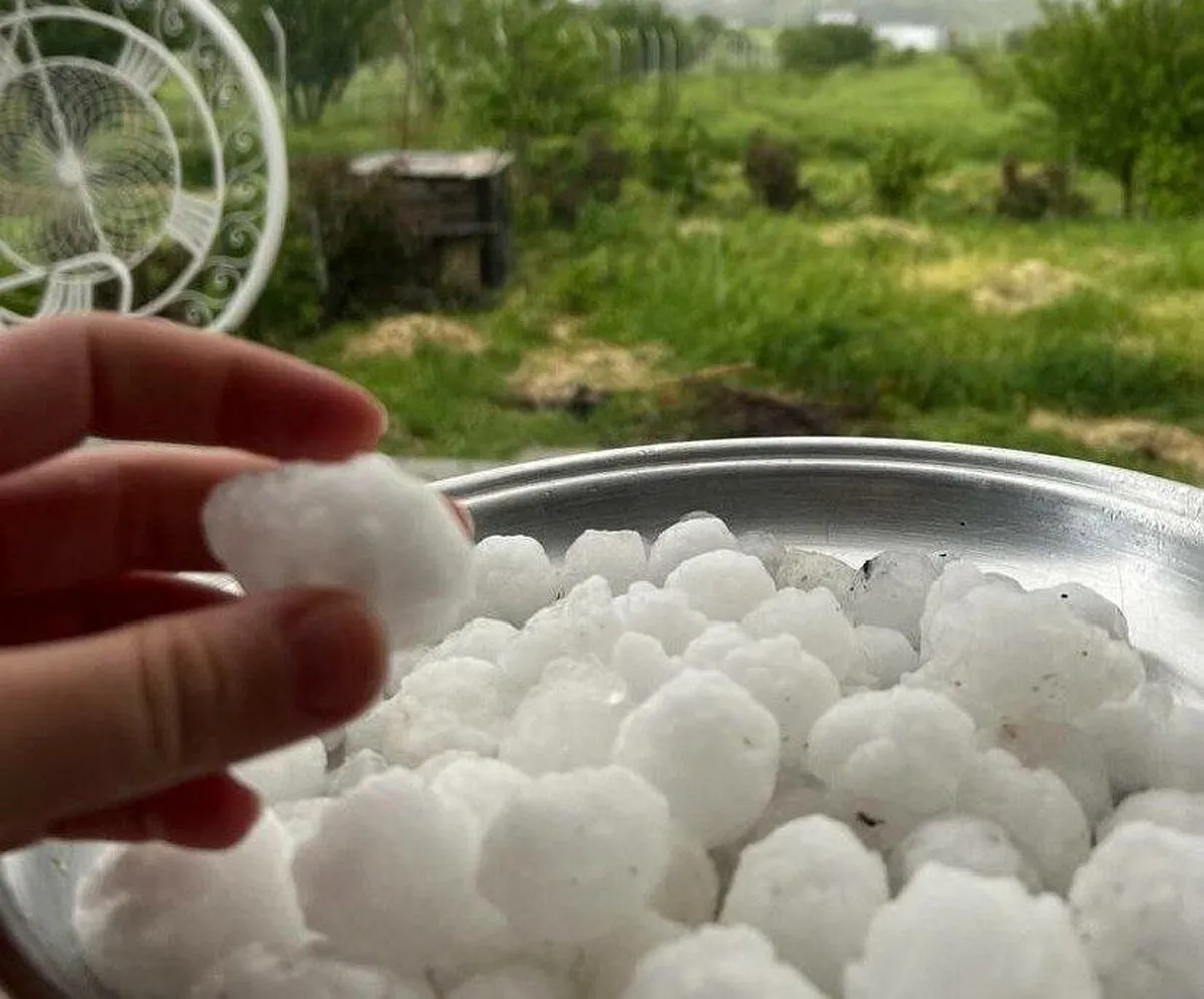 (تصاویر) ابعاد و اندازه تگرگ باریده شده در دهلران ایلام