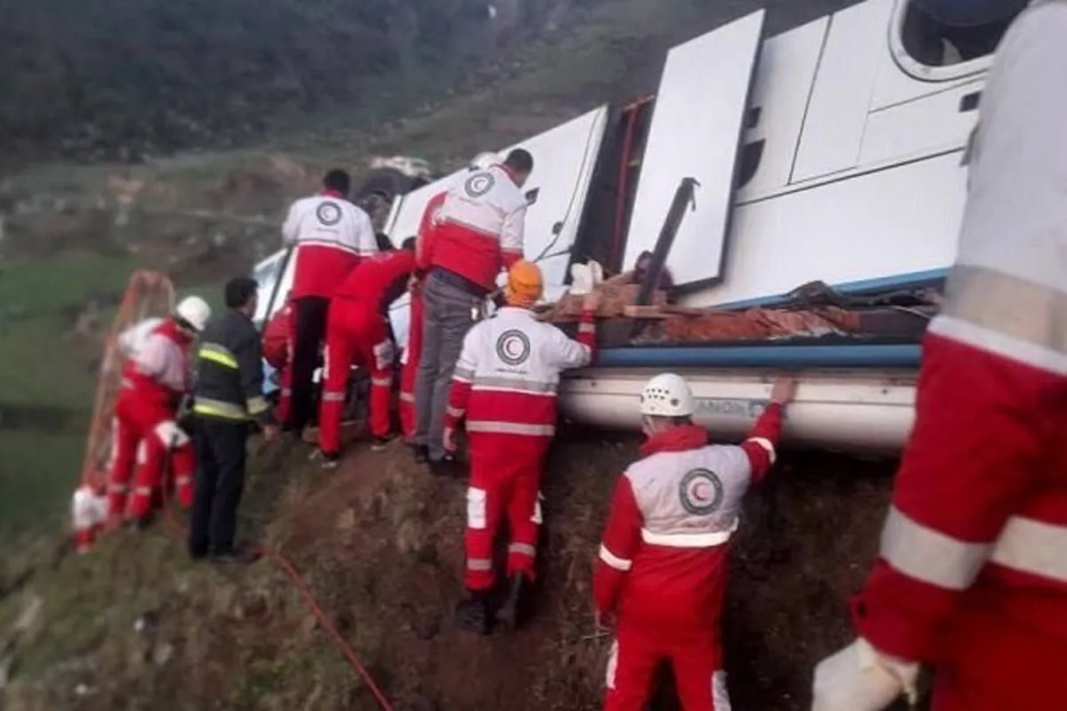 اولین تصاویر از محل واژگونی اتوبوس در گردنه حیران + ویدئو