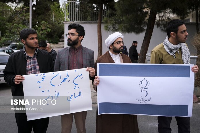 (تصاویر) تجمع اعتراضی مقابل سفارت اردن در تهران