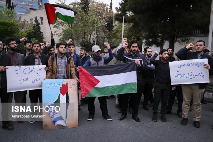 جمعی از اقشار مختلف مردم و گروههای دانشجویی روز سه شنبه ۲۸ فروردین ماه مقابل سفارت اردن در تهران تجمع کرده و نبستن حریم هوایی این کشور در مقابل پرواز های رژیم صهیونیستی در شب عملیات موشکی پهپادی وعده صادق را محکوم کردند.