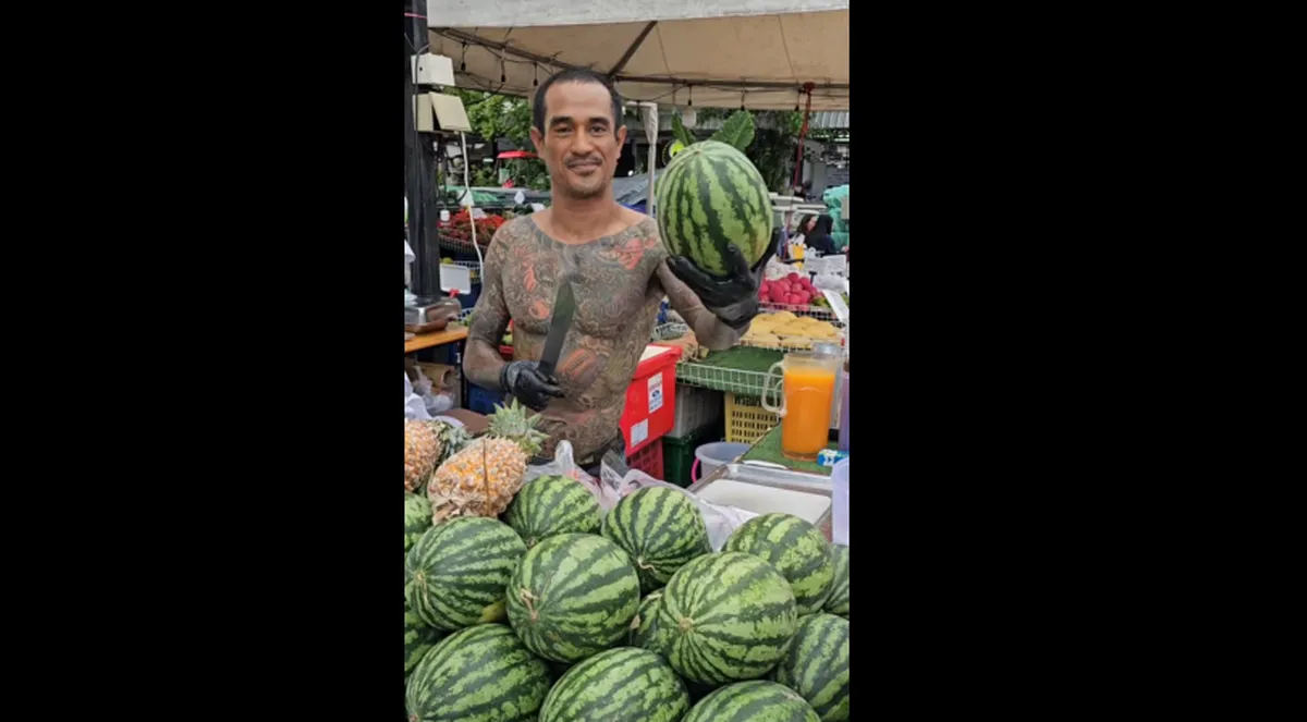 فیلم زیر تصاویری از یک گنگستر با بدنی کاملا تتو شده را نشان می‌دهد که روش مبتکرانه‌ای را برای فروش هندوانه به کار می‌گیرد.