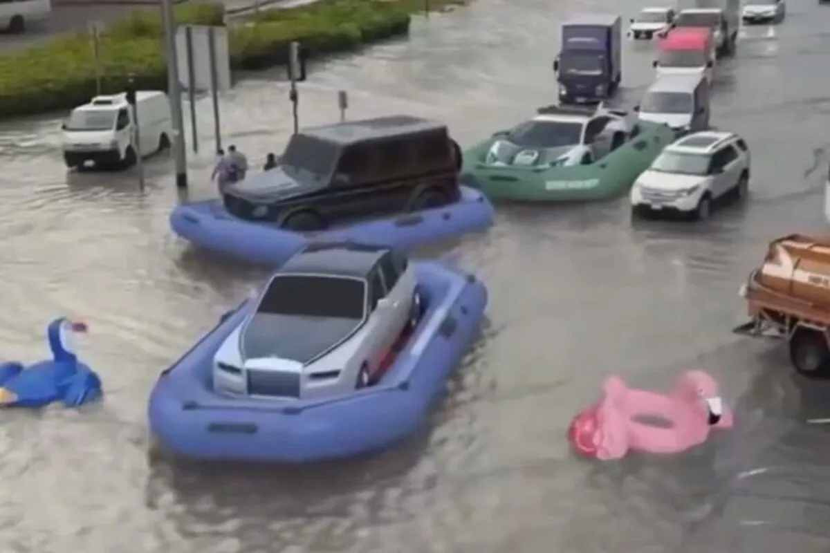 بعد از سیل غیرقابل پیش بینی در دبی، برخی از شهروندان متمول در این شهر خودرو‌های لوکس خود را با قایق‌های اختصاصی در سطح شهر جابه‌جا کردند.