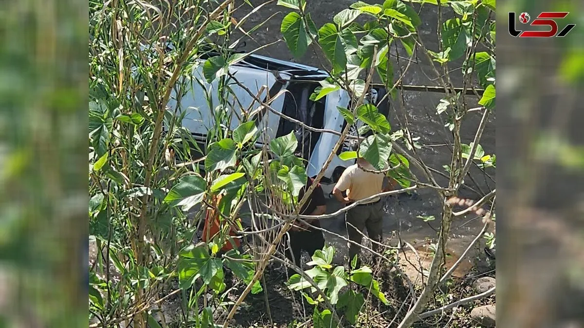 شیرجه پراید سفید رنگ به رودخانه مرزن آباد در جاده چالوس