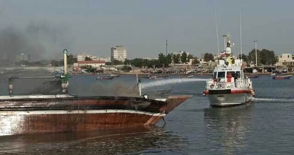 آتش سوزی ۲ فروند لنج در بندر شهدای هفت تیر چابهار