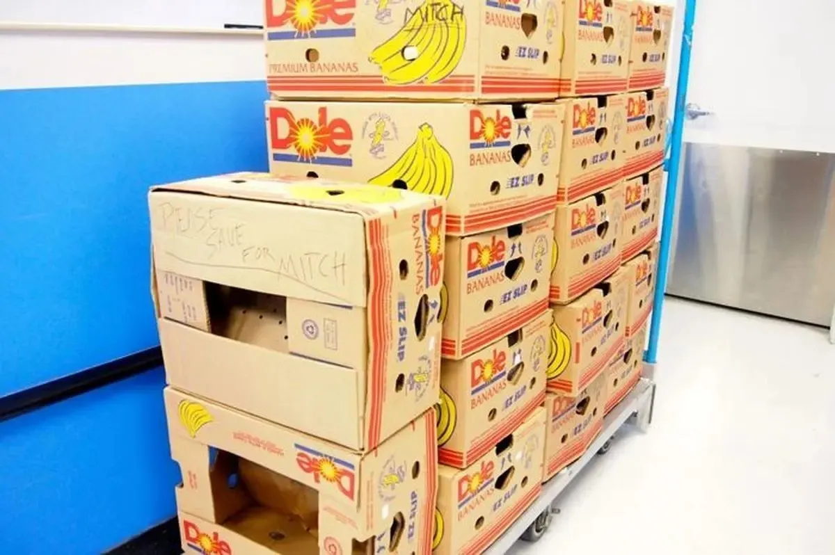 از کف تا سقفشان انباشته از کارتنهای موز صادراتی است. کارتنهای موز سمت راست به ردیف کارتنهای زیره ۳ لایه و کارتنهای سمت چپ به ردیف کارتنهای زیره ۵ لایه اختصاص دارد.