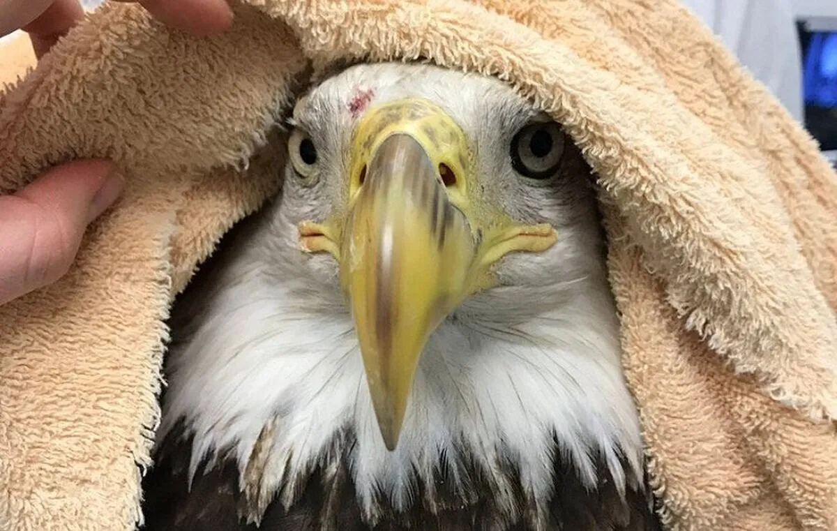 صحنه‌ای زیبا از نجات عقاب سرسفید که هم زخمی شده بوده و هم به دلیل باران شدید قادر به پرواز نبود و مردم به کمکش رفتند.