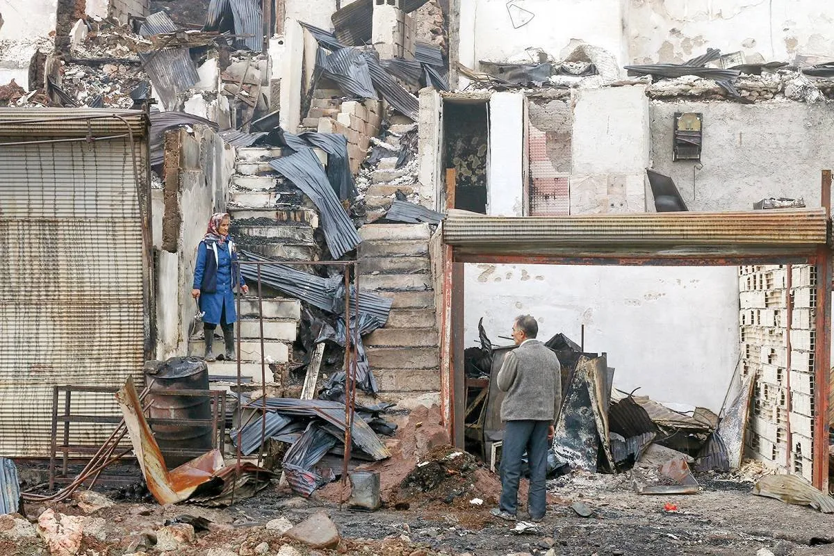 رد شعله‌ها روی آسفالت تکه‌شده، چاله‌ها، سقف‌های خراب‌شده، گاز پیکنیک و کپسول‌های زنگ‌زده، جا مانده. لوله‌های ترکیده که آب از لابه‌لای‌شان، خاکستر‌ها را خیسانده، النگو‌های سوخته، میله‌های نصفه، تلی از بتن، گچ و ورقه‌های فلزی، داستان شب وحشتی را روایت می‌کنند که اهالی در ۵۰ سال پیش ندیده‌اند. این پنجمین باری است که رضا رضایی، شاهد آتش گرفتن محله‌اش می‌شود. محله امامزاده یا شازده ابراهیم که پر از بازارچه، خانه و اقامتگاه رنگی و چوبی بود.