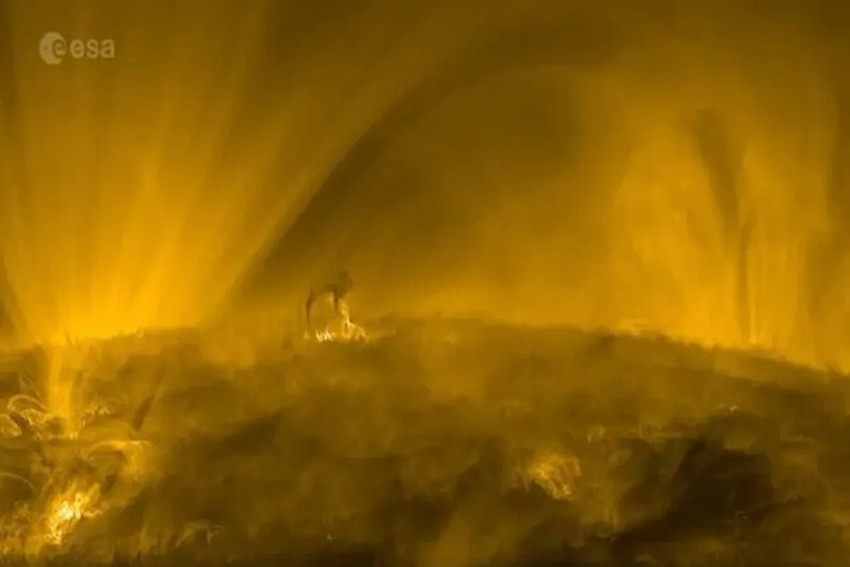 نمایی نزدیک که از ستاره ما در ماه سپتامبر سال ۲۰۲۳ توسط مدارگرد خورشیدی آژانس فضایی اروپا (ESA) ثبت شد، منطقه انتقال آشفته بین فام‌سپهر خورشید و تاج که دو لایه بیرونی جو خورشید هستند را نشان می‌دهد.