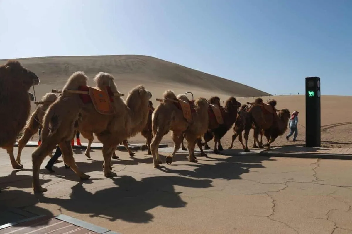 بسیاری از این گردشگر‌ها دوست دارند در امتداد جاده ابریشم باستانی پیاده‌روی کند، اما هزاران نفر دیگر این مناطق را با کمک شتر طی می‌کنند که موجب ترافیک شدیدی می‌شود.