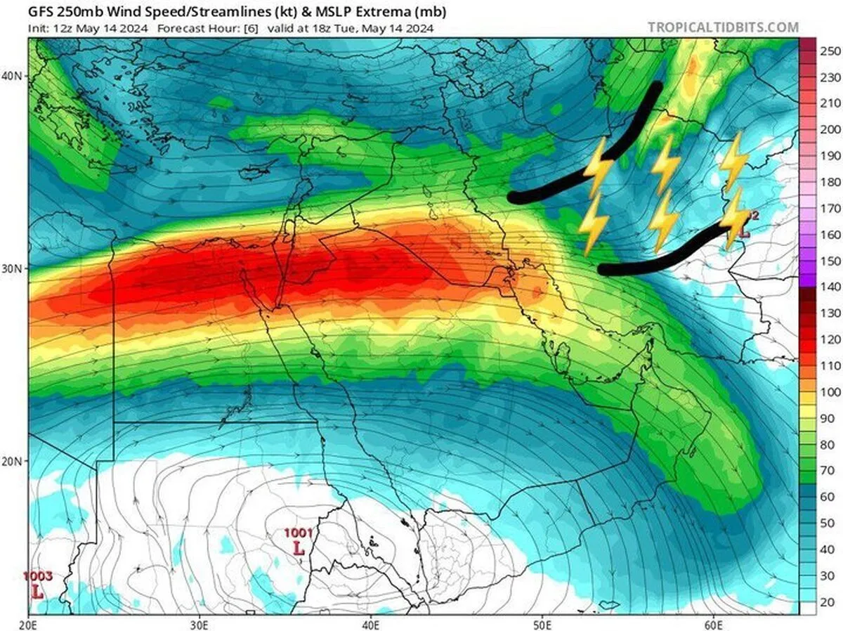 پیش بینی کلی بر اساس نقشه‌های همدیدی و آینده نگری سازمان هواشناسی، امروز و فردا در مناطقی از اردبیل، گیلان، مازندران، گلستان، خراسان شمالی، خراسان رضوی، خراسان جنوبی، شمال سیستان و بلوچستان، یزد، شمال سمنان، چهار محال و بختیاری، کهگیلویه و بویراحمد، خوزستان، اصفهان، کرمان، فارس، بوشهر، نیمه شمالی آذربایجان غربی و آذربایجان شرقی و ارتفاعات زنجان، قزوین، البرز و تهران افزایش ابر رگبار و رعد و برق وزش باد شدید موقت در برخی نقاط گردوخاک و در نقاط مستعد بارش تگرگ پیش بینی می‌شود.