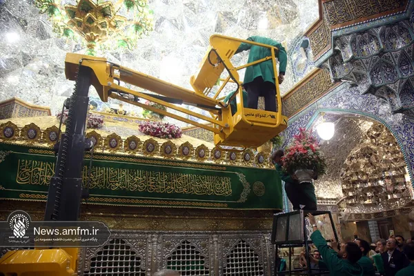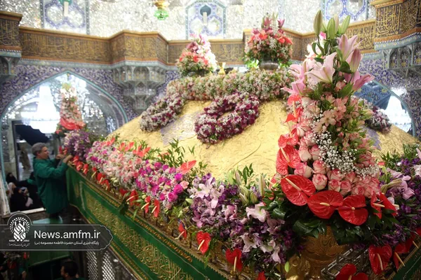 عکس| گل‌آرایی ضریح مطهر حرم حضرت معصومه (س) به مناسبت میلاد امام رضا (ع)