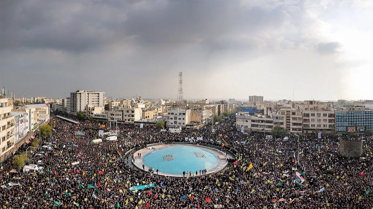 تصویر مردم عزادار در مراسم تشییع شهدای خدمت در میدان انقلاب اسلامی از نمای بالا را ببینید.