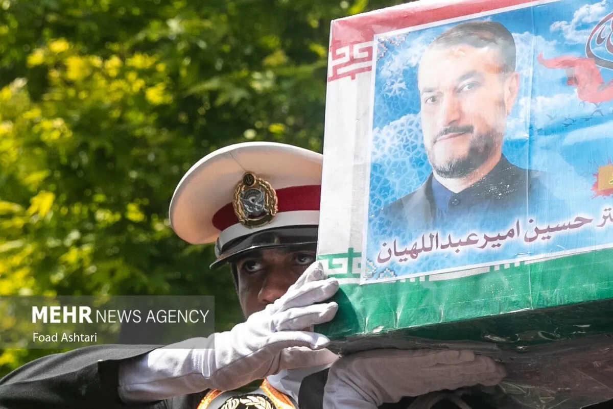 پیکر حسین امیرعبداللهیان وزیر فقید خارجه دولت سیزدهم امروز صبح در ساختمان وزارت خارجه تشییع و سپس در حرم حضرت عبدالعظیم حسنی(ع) به خاک سپرده شد. تصاویری از محمد جواد ظریف در کنار تابوت امیرعبداللهیان را مشاهده می کنید.