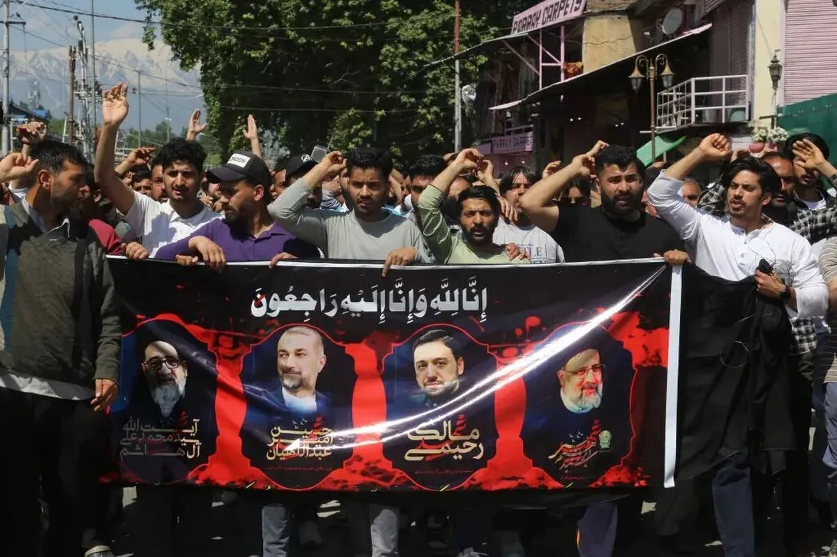 مردم کشمیر هند برای رئیس جمهور شهید و فقید ایران با شعارهای فارسیِ خامنهای رهبر ماست، ما اهل کوفه نیستیم.