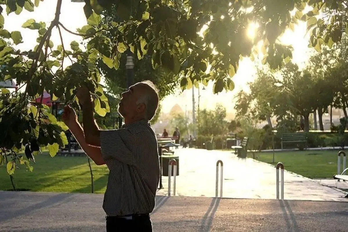 قابی جالب از چیدن توت از درخت‌های خیابان‌های تهران توسط مردم