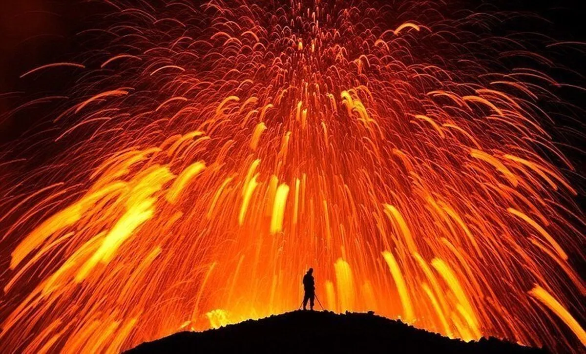 تصویری از فوران شگفت انگیز آتشفشان و تشکیل رودخانه‌ای از مواد مذاب در ایسلند را ببینید.