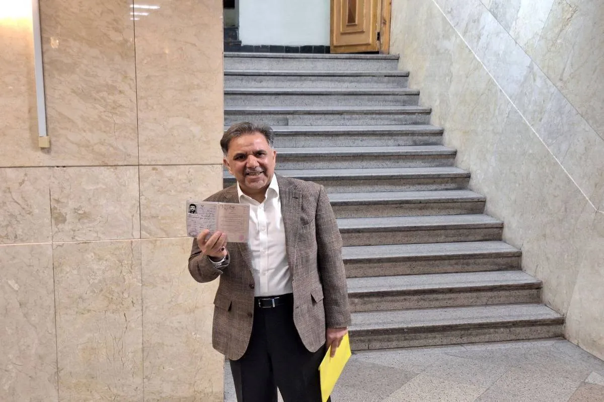 عباس آخوندی امروز برای کاندیداتوری انتخابات ریاست جمهوری شرکت کرد و در انتها تصویری از شناسنامه خود را به خبرنگاران نشان داد.
