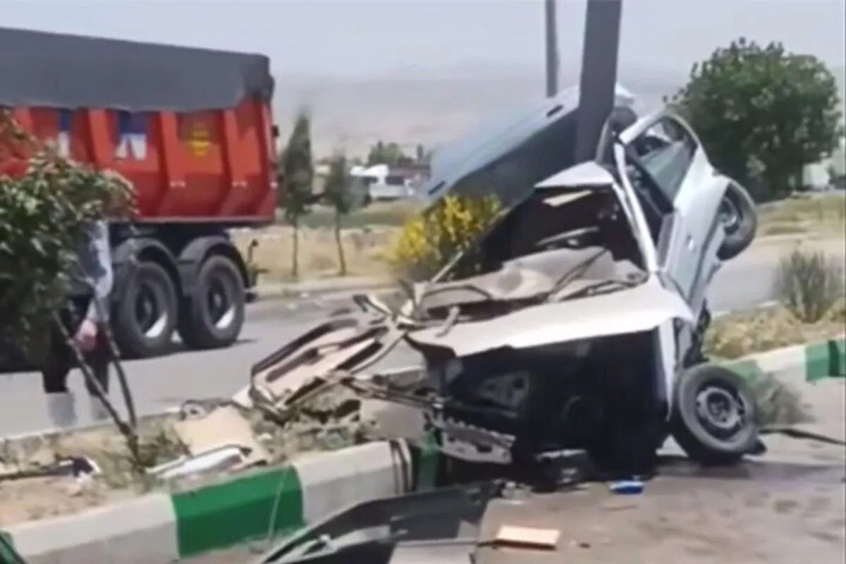 ویدئو | تصادف وحشتناک پژو ۴۰۵ با تیر برق در قم