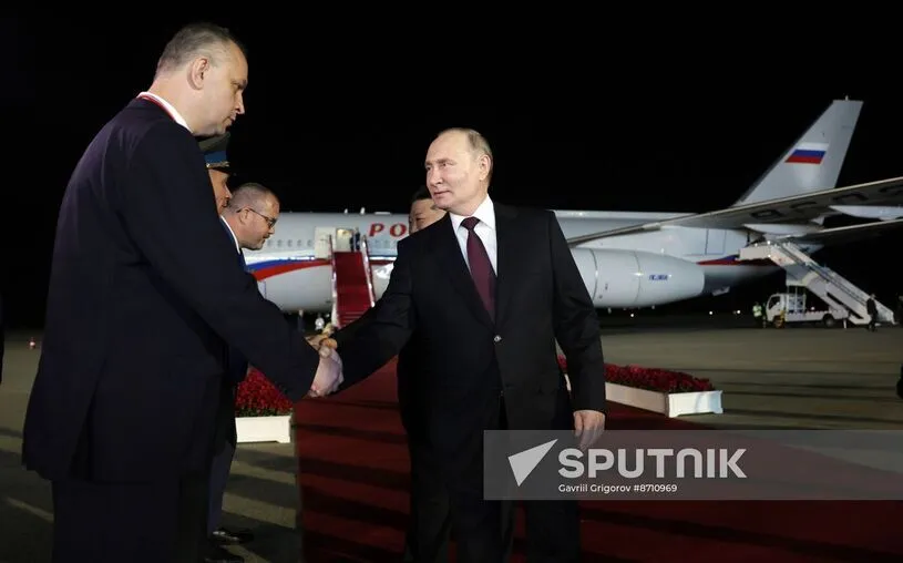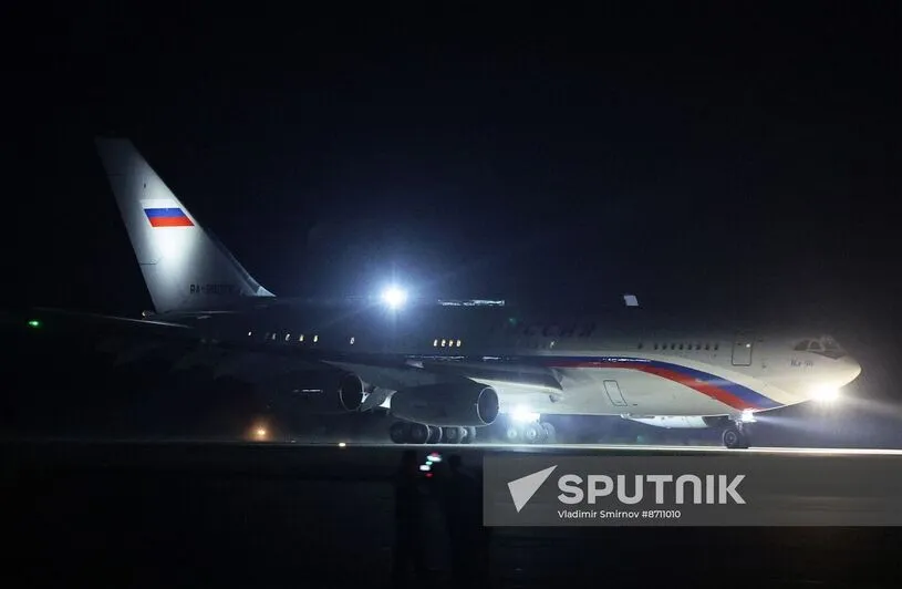 هواپیمای پوتین در فرودگاه پیونگ یانگ