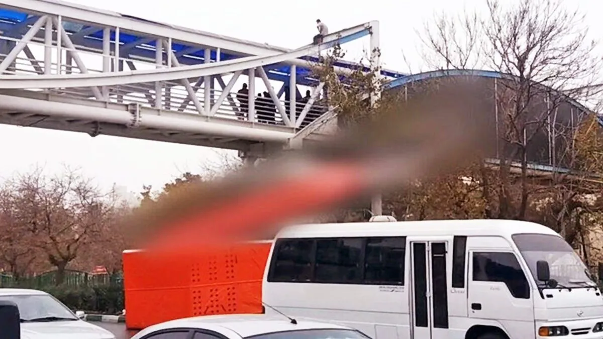 به تازگی تصاویری از خودکشی یک جوان از روی پل عابر پیاده در قالب دوربین مخفی تهیه شده است تا واکنش مردم به اقدام او را ببینیم.
