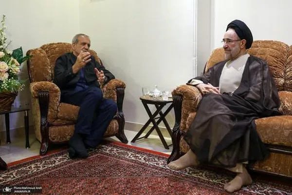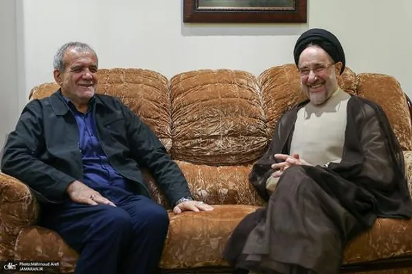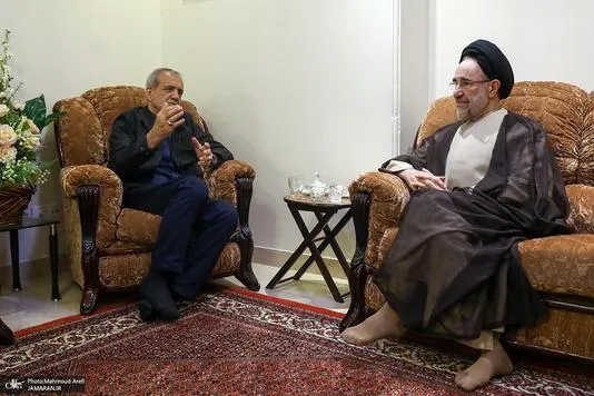 سید محمد خاتمی رئیس جمهوری پیشین، با حضور در منزل پزشکیان در تهران با او دیدار کرد و پیروزی اش در انتخابات ریاست جمهوری اخیر را تبریک گفت.