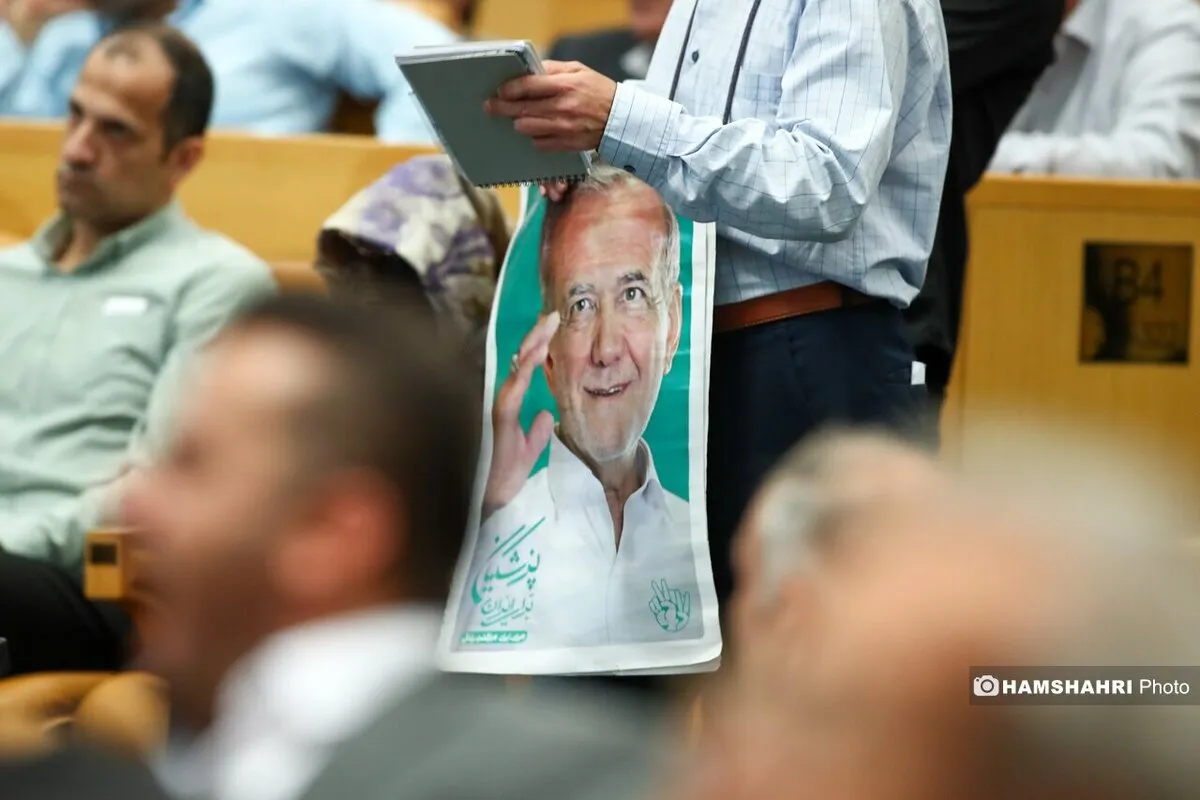 روز پنجشنبه، در جریان دیدار اعضای ستادهای انتخاباتی استان تهران با مسعود پزشکیان، برخی حاضران در دیدار لابهلای سخنرانی او، شعار «یاحسین/میرحسین» دادند.
