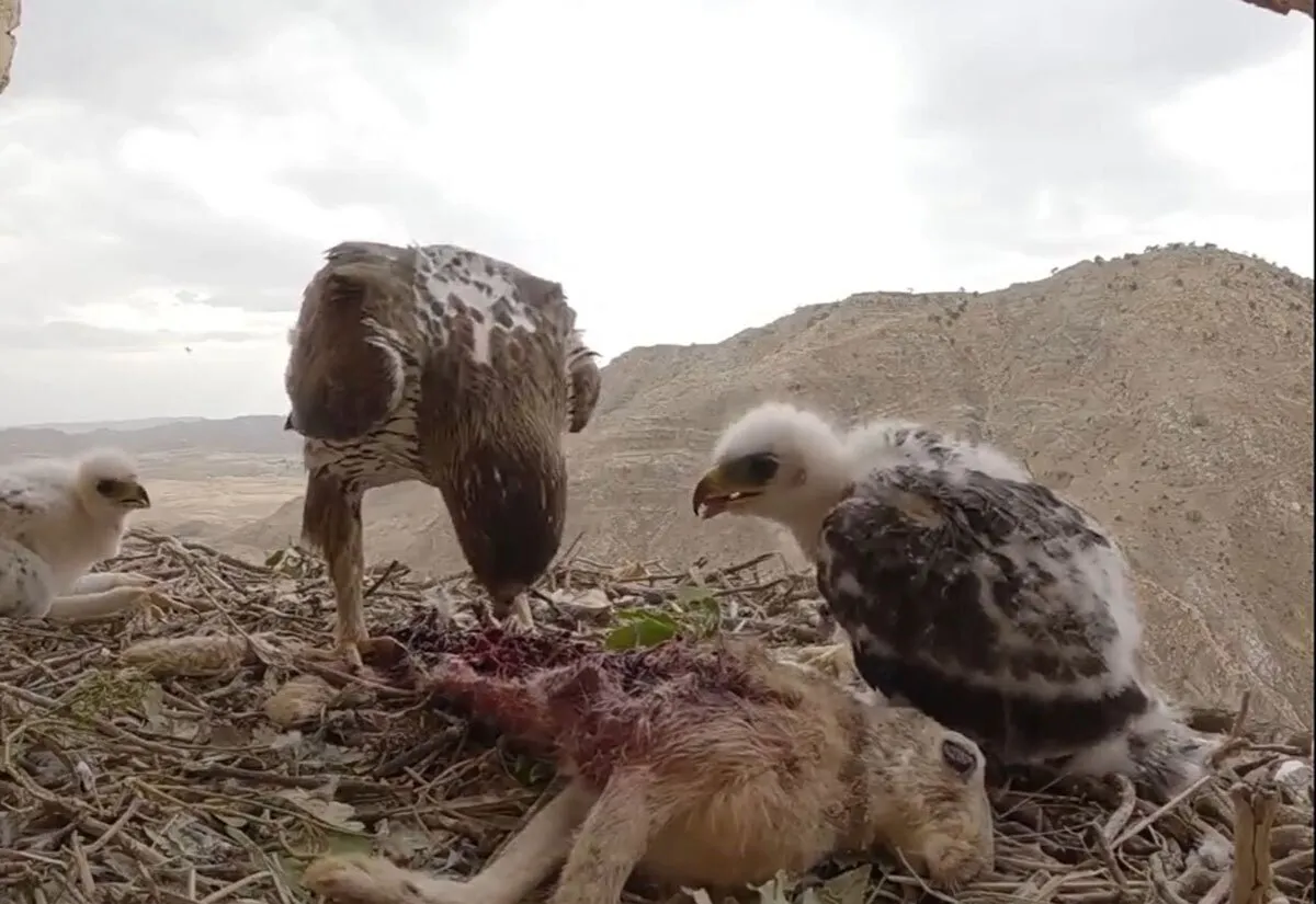 کوهنورد ایلامی تصاویری از غذا دادن یک عقاب(خرگوش) به جوجههایش در ارتفاعات زاگرس در ایلام را شکار کرده است.