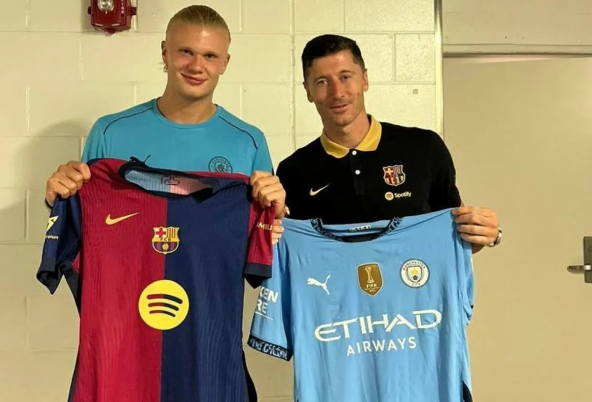 ارلینگ هالند و روبرت لواندوفسکی پس از پایان بازی دوستانه شب گذشته پیراهن‌شان را با یکدیگر عوض کردند.