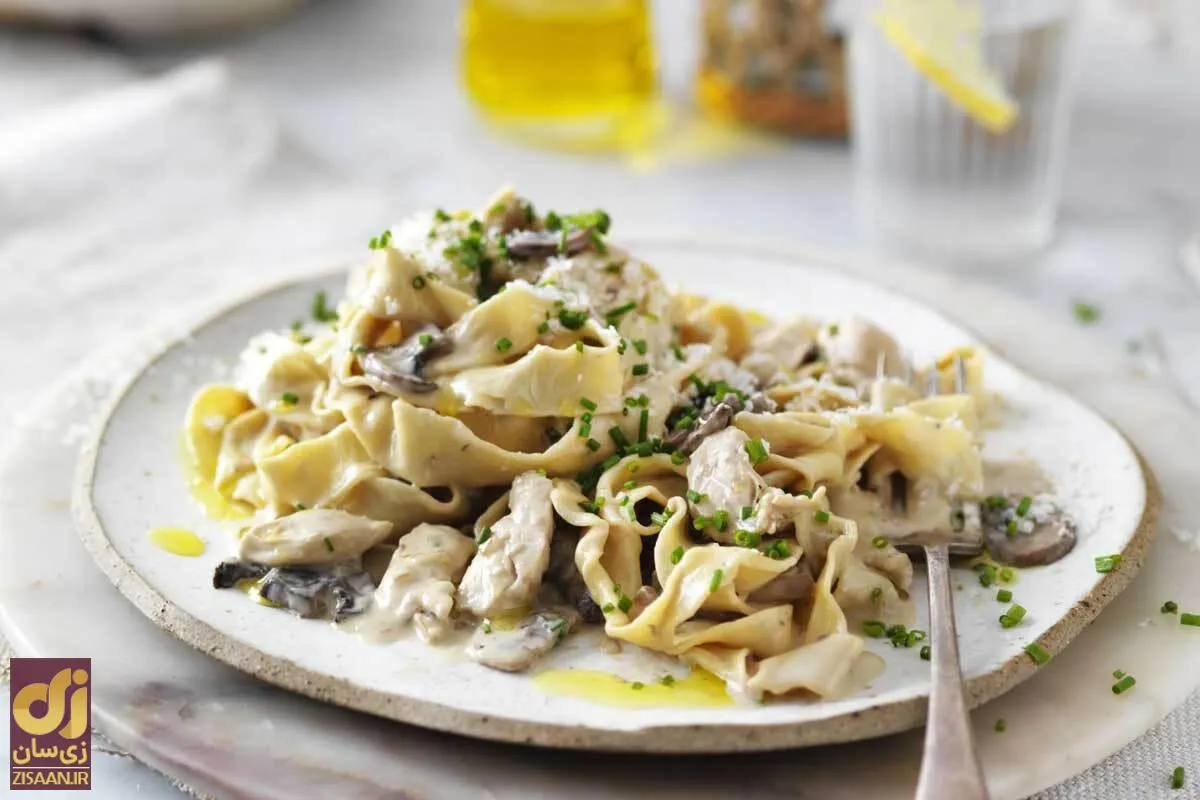 زی‌سان: گاهی وقت‌ها بسیار خسته هستید و حوصله آشپزی ندارید یا یک مهمان سرزده برای شام یا ناهار دارید و می‌خواهید یک غذای خوشمزه و ساده و درست کنید. باید بگوییم در چنین مواقعی می‌توانید پاستا را امتحان کنید. پاستا یک غذای ساده و خوشمزه و در عین حال متنوع است که در کمترین زمان حاضر می‌شود. در ادامه طرز تهیه یکی از همه پسندترین انواع پاستا، یعنی پاستا مرغ و قارچ را به شما آموزش داده‌ایم.