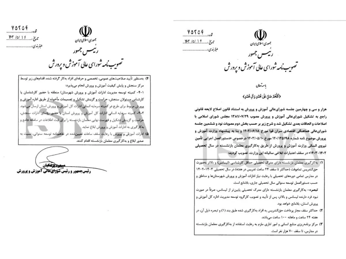 رئیسجمهور در اولین ابلاغیهی این شورا در دولت چهاردهم، مجوز جذب ۷۰ هزار معلم بازنشسته را صادر و ابلاغ کرد.