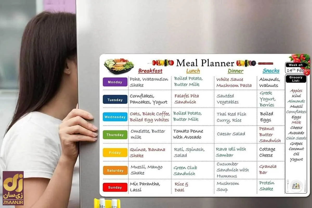 لیست برنامه غذایی هفتگی به همه ما کمک میکند تا هم سالمتر غذا بخوریم و هم روی یک نظم و یک برنامه غذایی آنطور که دوست داریم و برایمان مفید است پیش برویم و آشپزی کنیم. چنین لیستی به کاهش هزینهها و کنترل مخارج آشپزخانه ما هم کمک میکند. با این مطلب از زیسان همراه باشید تا ببینیم امروز شنبه تا جمعه در آشپزخانه قرار است چه غذاهایی طبخ کنیم.