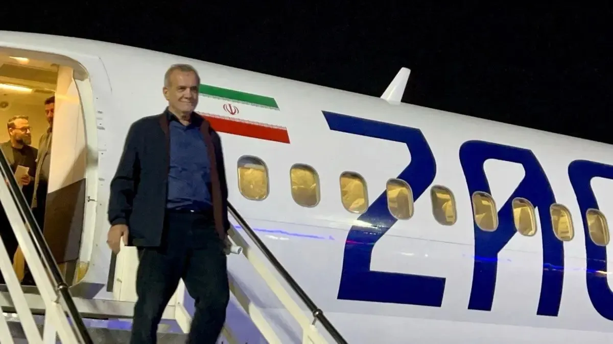 ویدئو / فیگور خاص پزشکیان حین بالا رفتن از پله‌های هواپیما که رسانه‌ای شد