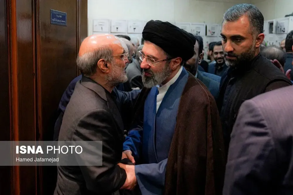 تصاویری جدید از فرزند رهبر انقلاب در مراسم ختم والده رئیس سابق صدا و سیما منتشر شد.
