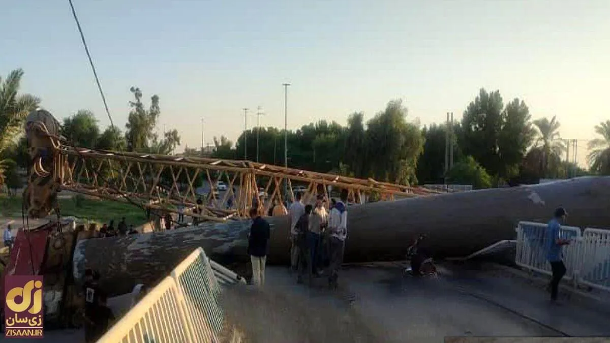 جرثقیل پروژه ساخت پل "شهدای خدمت" بر روی پل قدیم خرمشهر سقوط کرد