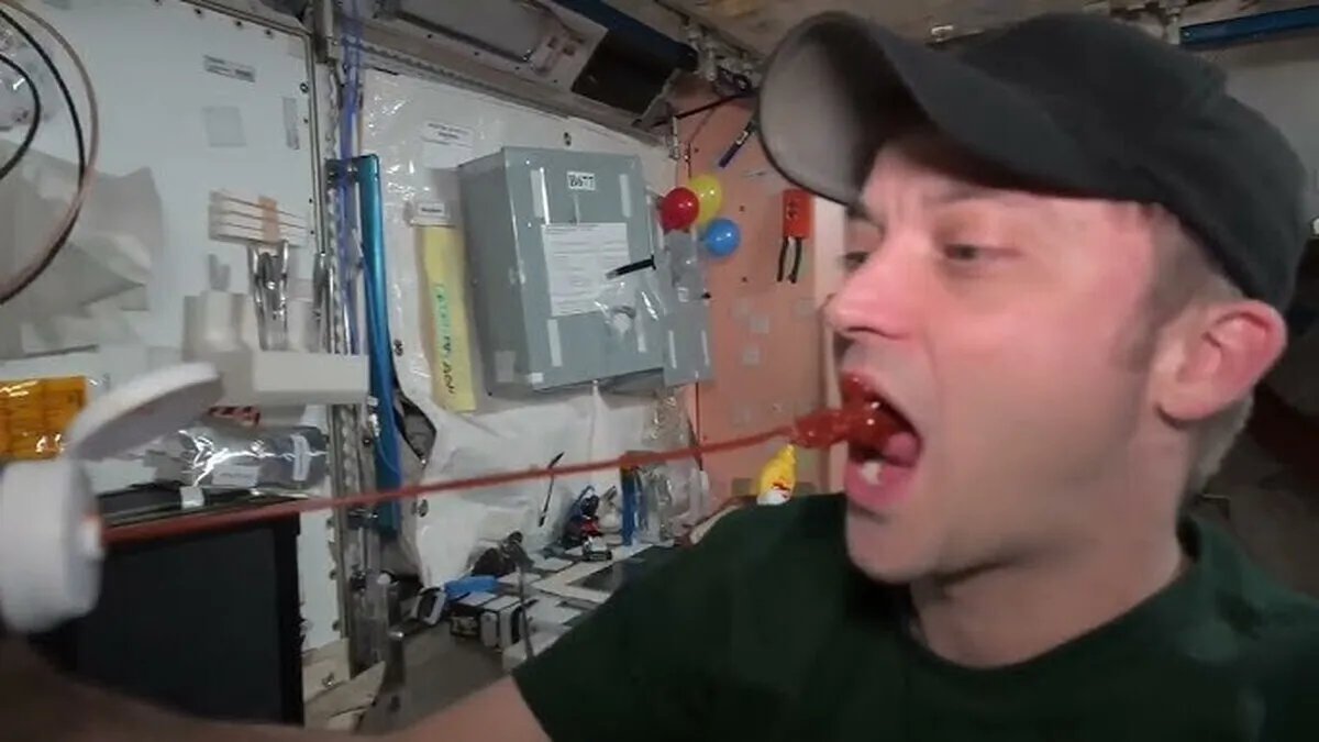 خدمه ایستگاه فضایی بین‌المللی در شرایط گرانش صفر دست به کار جالبی زدند و نشان دادند که بطری‌های سس کچاپ خارج از سیاره زمین چگونه هستند.