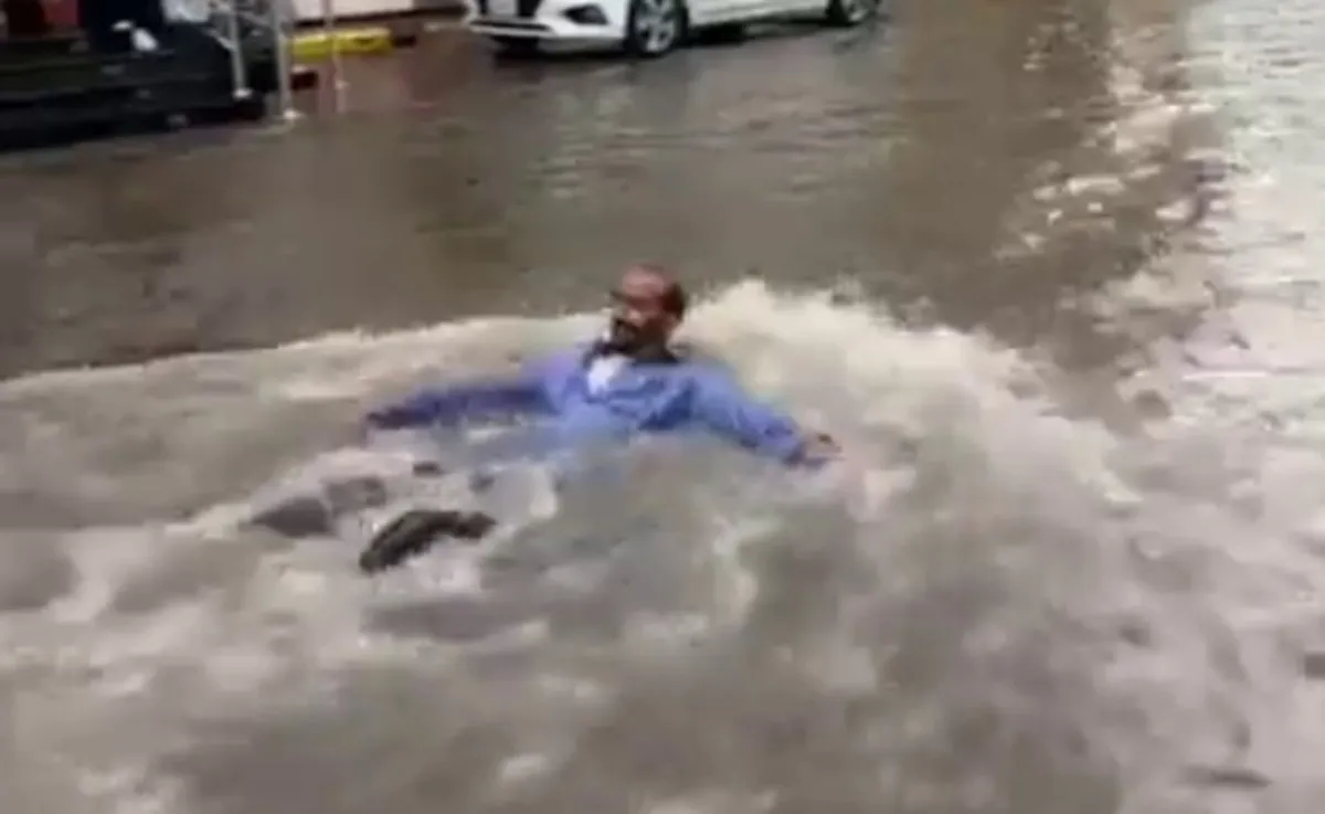 ویدئو | تصاویری حیرت‌انگیز از بارش شدید باران در مکه و موج‌سواری مردم روی آب