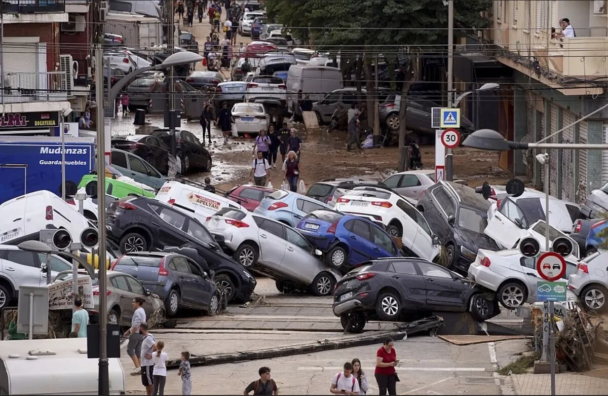 انباشت ۱۳۷ هزار خودرو در خیابان های والنسیای اسپانیا پس از وقوع سیل را ببینید