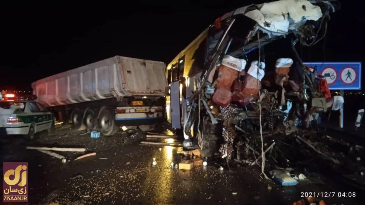 ویدئو | اولین تصاویر از تصادف خونین اتوبوس و تریلی در جاده اصفهان - آباده
