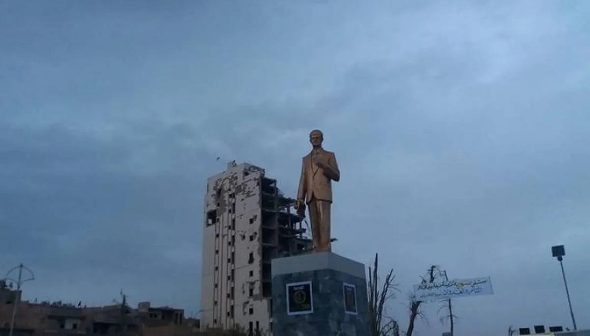 تصاویری از شکستن مجسمه بزرگ حافظ اسد در شهر حماه سوریه بعد از سقوط شهر را ببینید.
