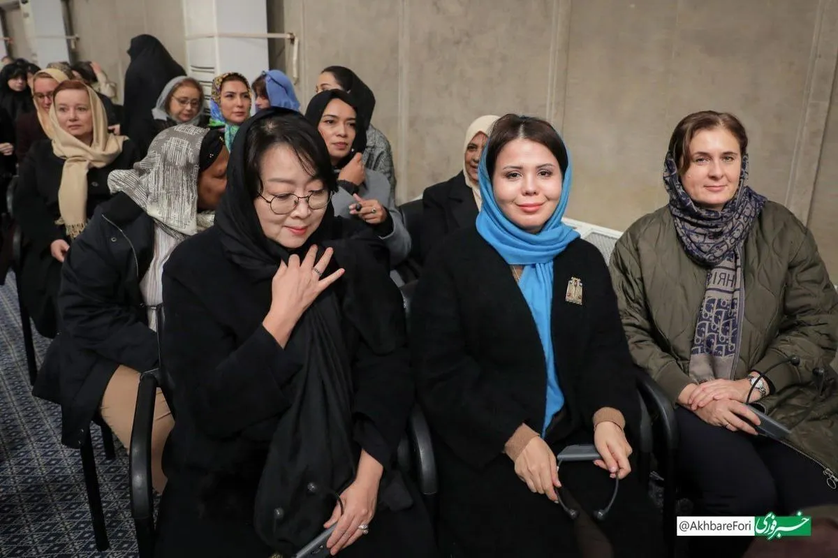 رهبر معظم انقلاب در دیدار هزاران نفر از بانوان سراسر کشور امروز سخنرانی کردند. در این میان تصویری از حضور بانوان غیر ایرانی در دیدار با رهبر معظم انقلاب را میبینیم.