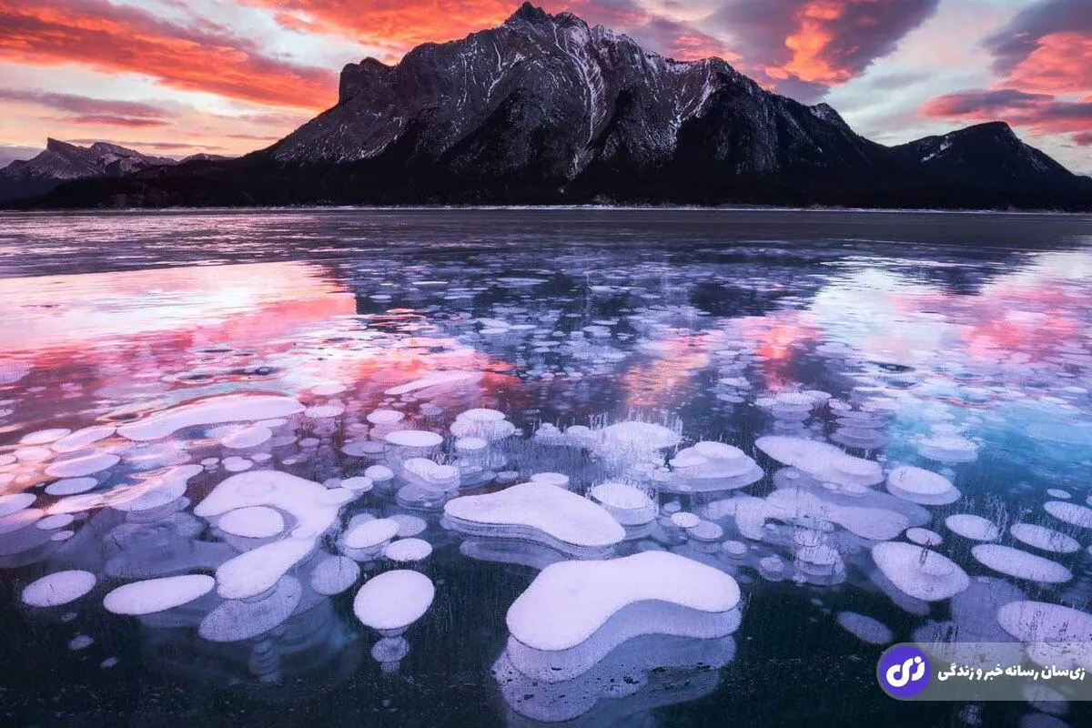 تصاویری عجیب از یخ زدن یک دریاچه در کانادا